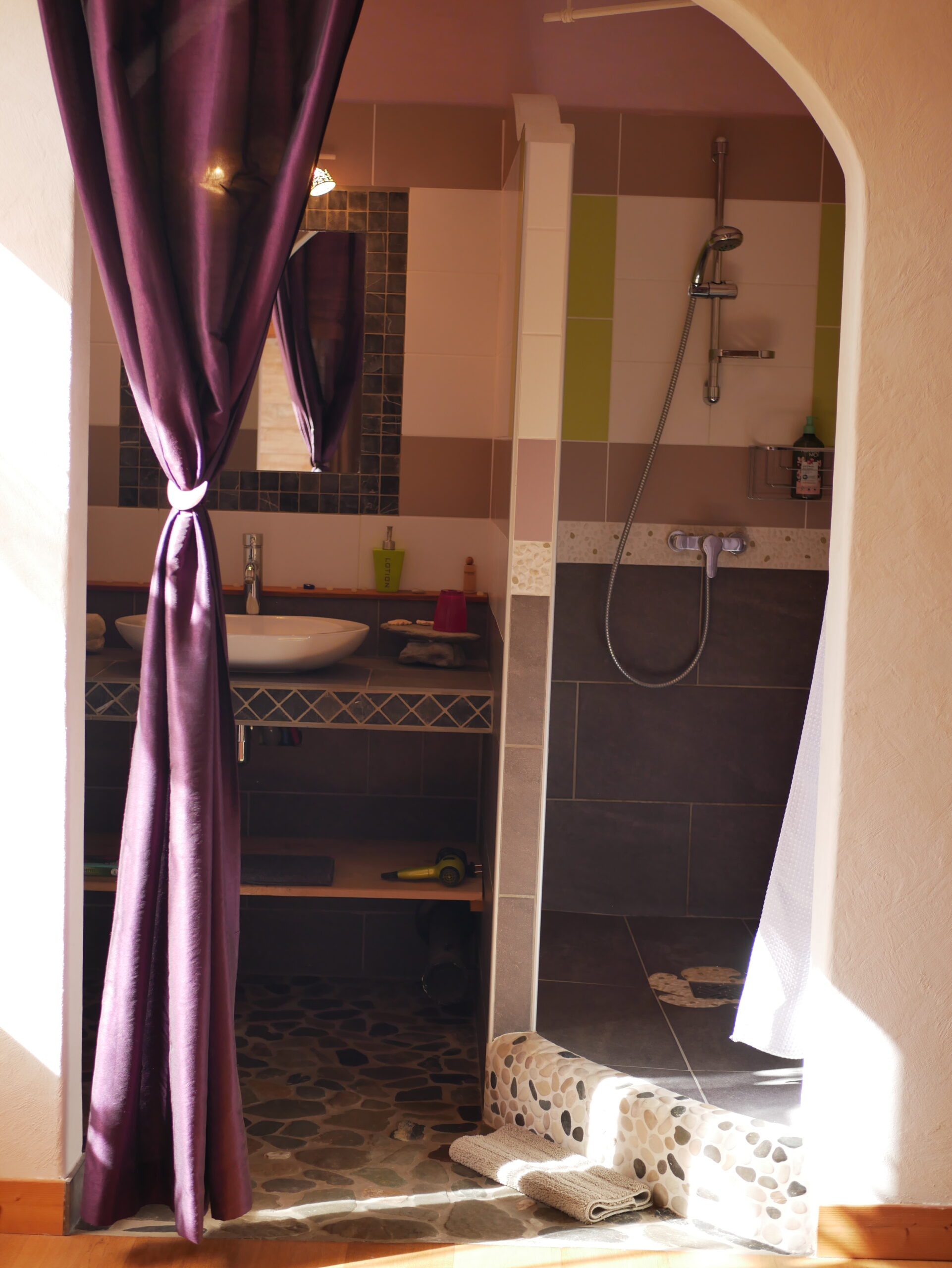 L’entièreté du Mas des fontaines est disponible à la location pour le mois de juillet et août pour vos vacances ressourçantes (autres dates possible sur demande). Le Mas se compose de 7 chambres et capacité de couchage pour 14 personnes. La partie principale du bâtiment est composée de 3 chambres avec chacune leur salle de bain privative, une cuisine entièrement équipée, salon, poêle à granulé, cheminée et terrasse avec vue sur les montagnes. Attenant, le studio avec Kitchenette, salle de bain, lit queen size et canapé lit. Il partage une terrasse de 100m2 vue dégagée sur les montagnes et la rivière avec le gîte composé d’un bar/salon, billards, cave à vins, cuisine équipée, poêle à granulés. L’étage inférieur est composé de 2 chambres avec salle de bain italienne.